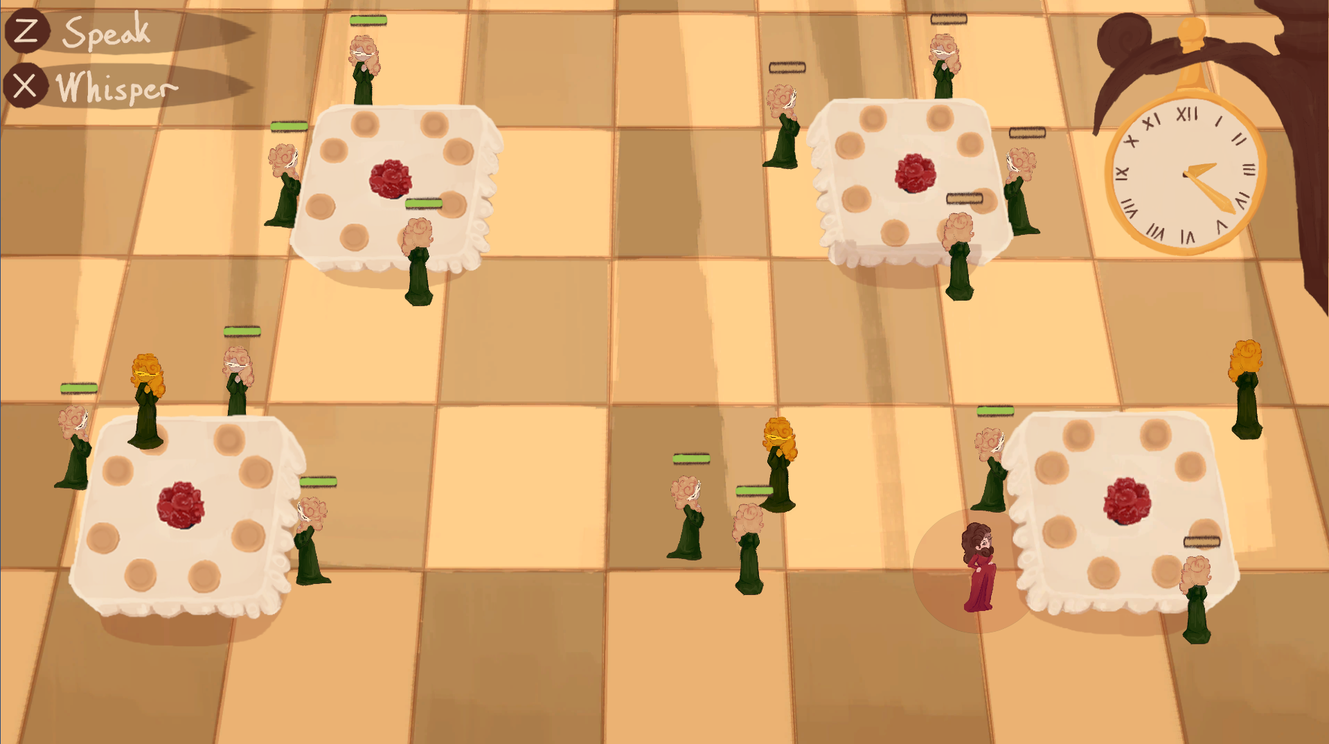 In this top down strategy game you play as a noble woman with a knack for causing trouble. Your only goal in this masquerade is to spread as much lies and rumors as humanly possible without getting caught.